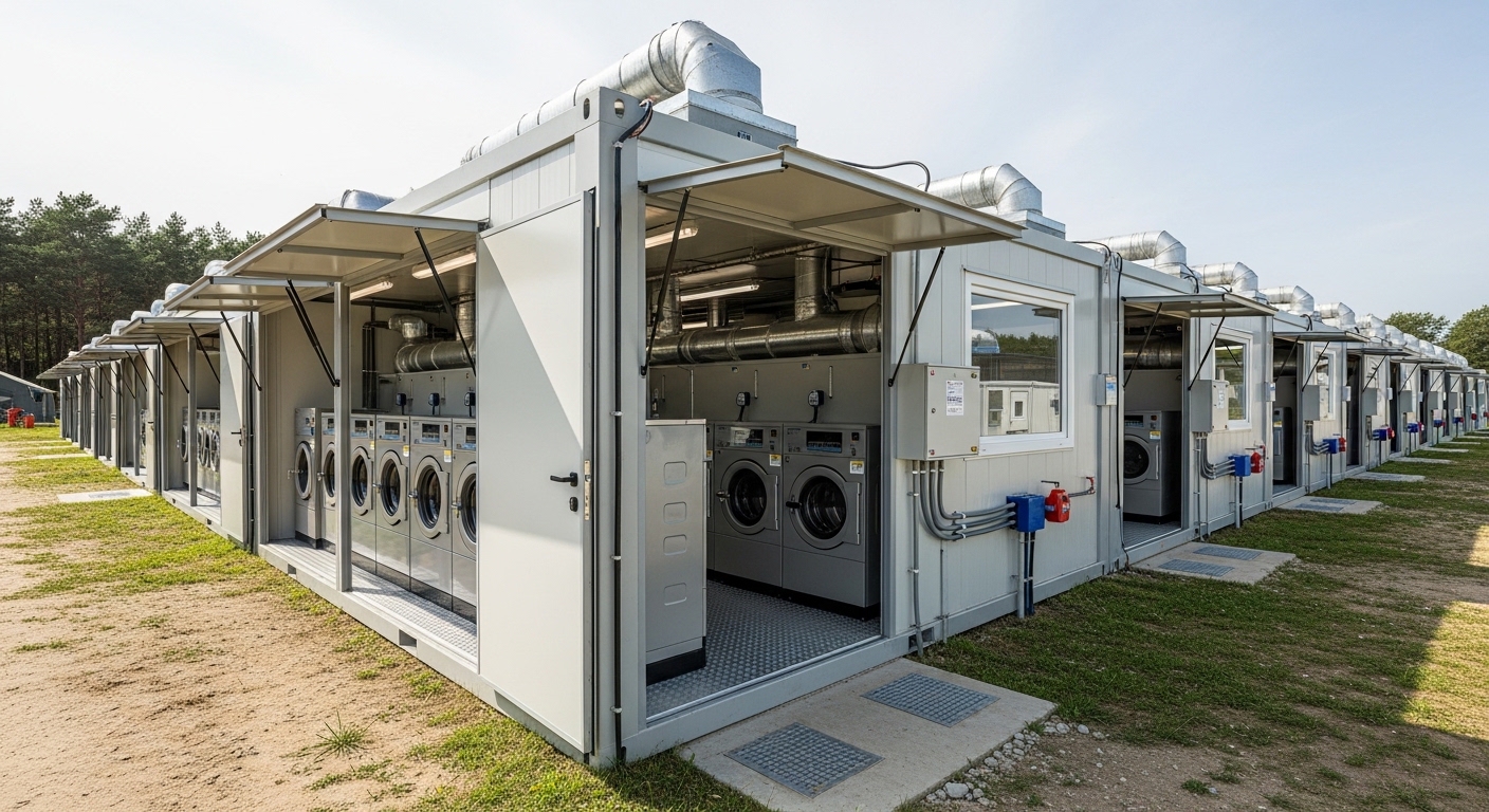Çamaşırhane üniteleri, fabrika ortamında üretilen ve sahada hızlı şekilde devreye alınabilen prefabrik modüler yapılardır. Farklı kapasite ve operasyon ihtiyaçlarına göre ölçeklenebilir biçimde tasarlanır.